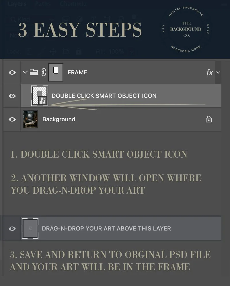 5. Save the Smart Object, return to the main mockup, your artwork updates in the frame